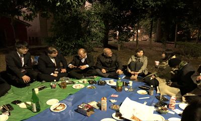 夜桜の下、美味しいお酒とお料理を楽しみました。