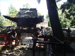やまない雨の中、楼門をくぐり拝殿を正面に参拝して、先生が「割り拝殿じゃないな」とポツリ。