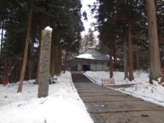 世界遺産に登録された中尊寺ですが、1月に訪れる人は少なく、静かな雪の月見坂をおそるおそる歩いてゆきました。